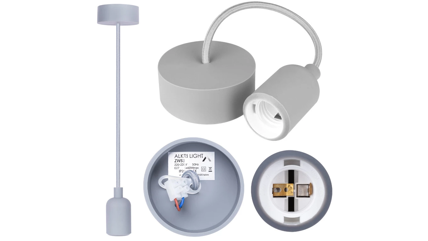 Lampa wisząca zwis sufitowy E27 silikonowa szara