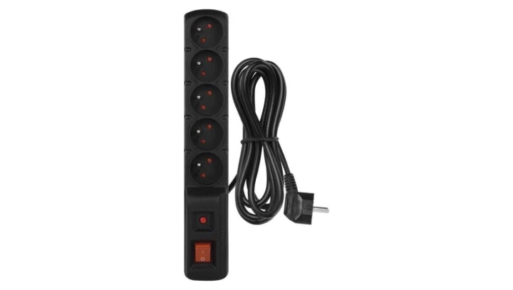 Przedłużacz sieciowy 5 gn. 5m z przeł. czarny MT119B-5 MONTIS