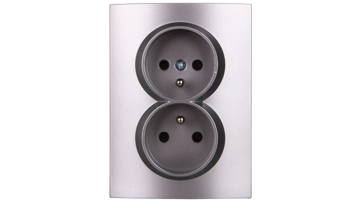 LOGI Gniazdo podwójne kompletne ochrona styków śrubowy Srebrny 16A 250V 021260143 25211