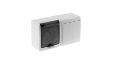 MADERA Łącznik hermetyczny pojedynczy z podświetleniem + gniazdo pojedyncze z/u z klapką przezroczystą biały ZH-NŁ1SG/00/d
