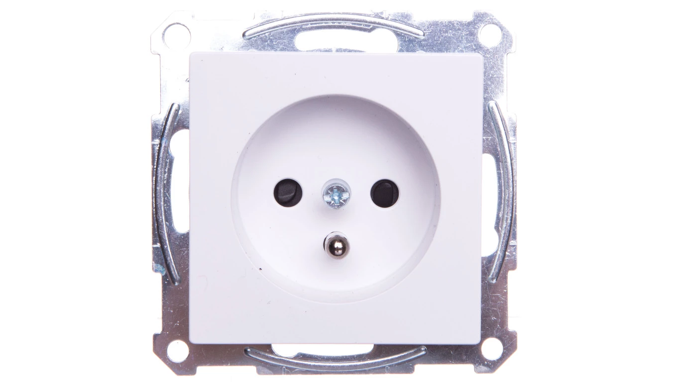 Simon 54 Gniazdo pojedyncze z/u 16A IP20 z przesłoną torów białe DGZ1Z.01/11