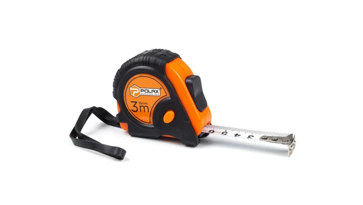 Miarka budowlana Polax, korpus gumowany, magnetyczny, 2 ograniczniki, zacisk 3 m x 16 mm (29-011)