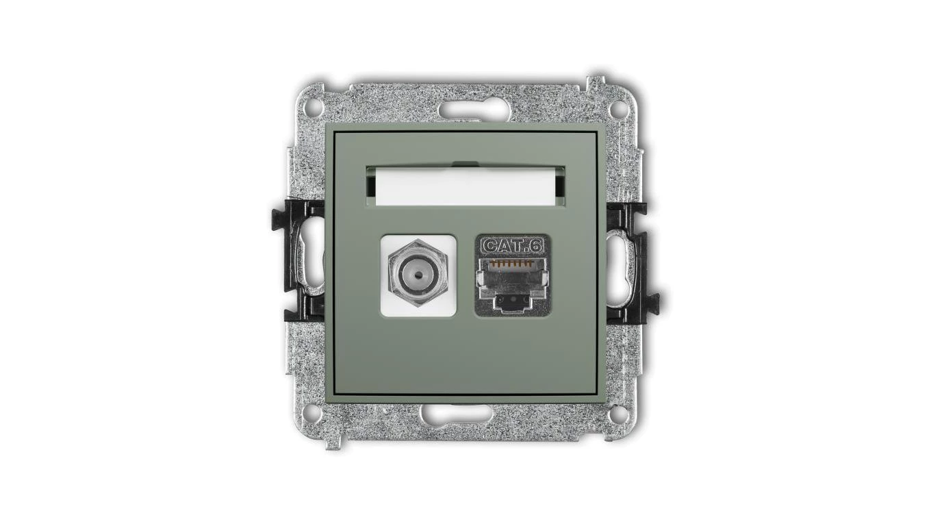 Simon 54 Gniazdo antenowe i komputerowe typu F i RJ45 kat.6 srebrny mat DASFRJ45.01/43