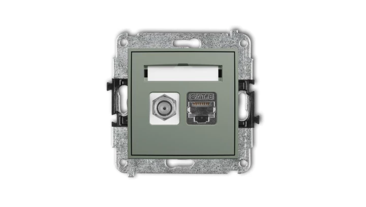 TREND Gniazdo antenowe pojedyncze typu F (SAT) + gniazda komputerowe pojedyncze 1xRJ45 kat. 5e 8-stykowy złoty metalik 8GFK-1