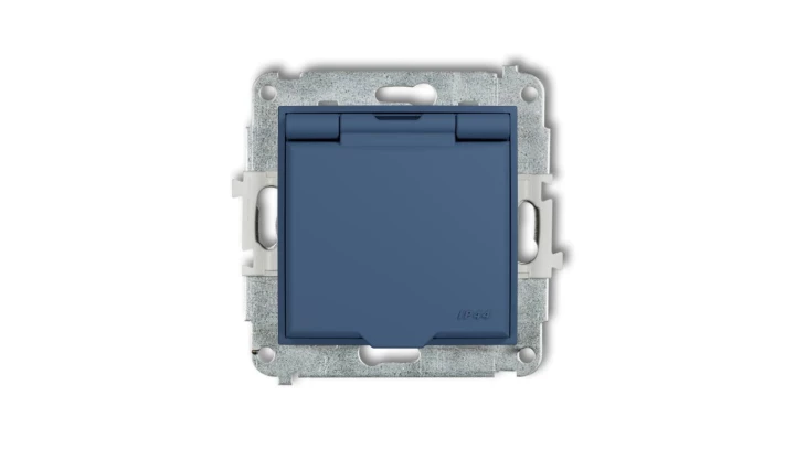 MINI Mechanizm gniazda bryzgoszczelnego z uziemieniem 2P+Z (klapka navy blue, przesłony torów prądowych) navy blue 64MGPB-1zp