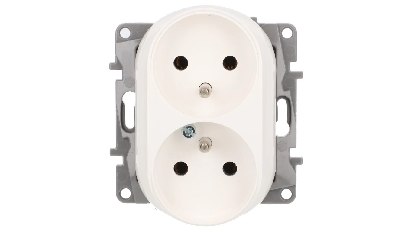 NI2:B GN 2X2P+Z WIELORAMKOW BP Niloe - Gniazdo 2 x 2P+Z do ramek wielokrotnych - bez przesłon, zaciski śrubowe - Białe 764562