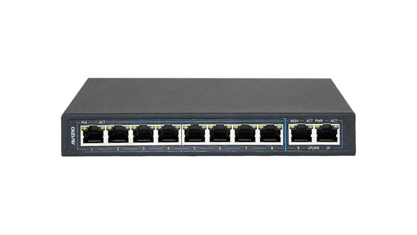 Niezarządzalny przełącznik (switch) 10xRJ45 - 8 portów RJ45 PoE+ 1Gb/s + 2 porty RJ45 Uplink 1Gb/s AVIZIO