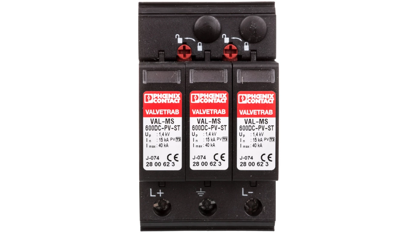 Ograniczniki przepięć typu 1/2 dla systemów fotowoltaicznych DC-Ochronnik VAL-MS-T1/T2 1000DC-PV/2+V 2801160