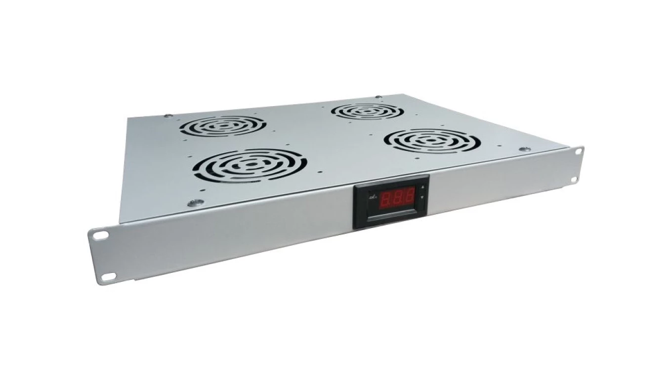 Panel wentylacyjny 19 1U, 4 wentylatory, termostat, kolor szary SA-F-1U-4-T-S