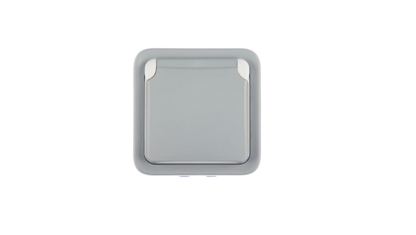 B2 Gniazdo podwójne 2P+Z bryzgoodporne z klapką w kolorze wyrobu IP54 szary 00060278