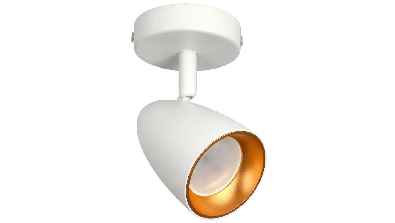 Pojedyncza punktowa oprawa sufitowa typu spot OVO 1 White Gold, listwa, IP20, GU10, biała, pierścień złoty EDO777236 EDO