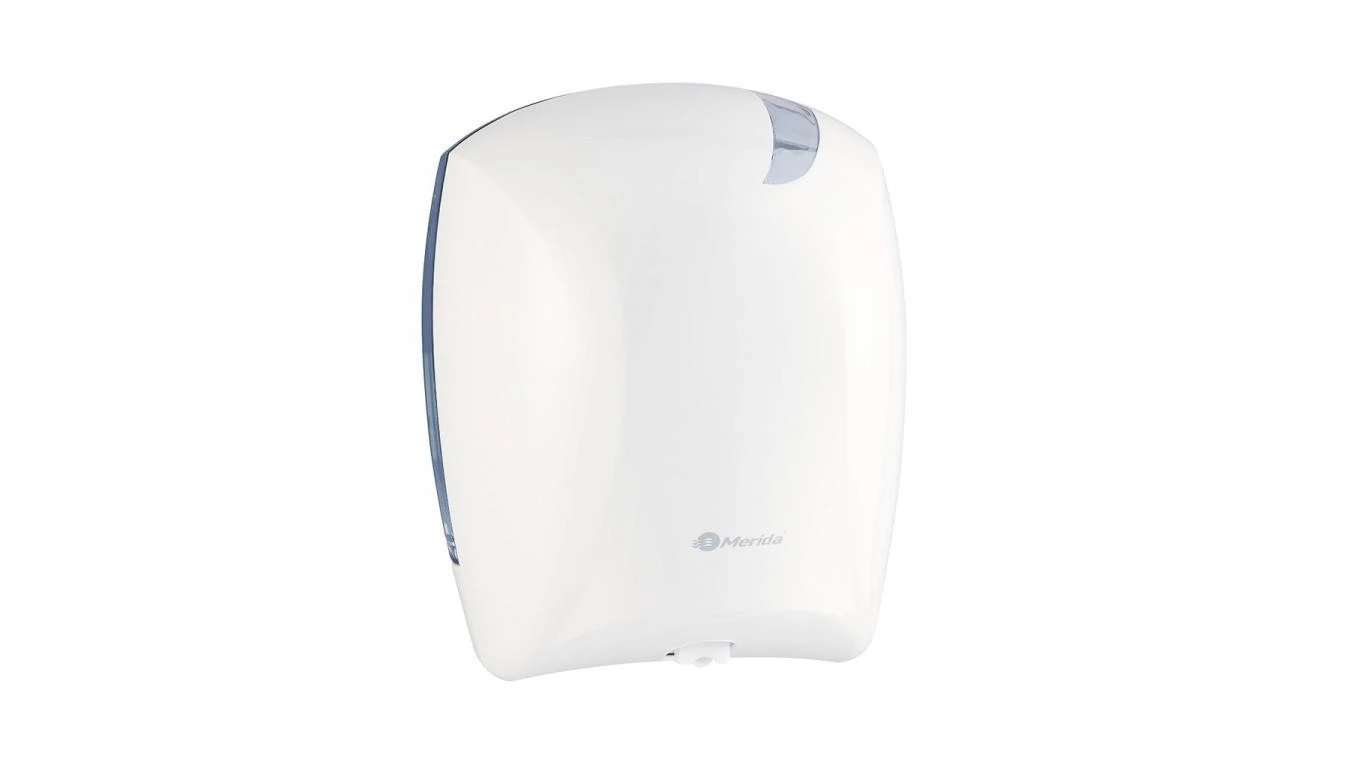 Pojemnik na ręczniki papierowe w rolach MERIDA TOP MAXI biały ABS okienko niebieskie CTN101