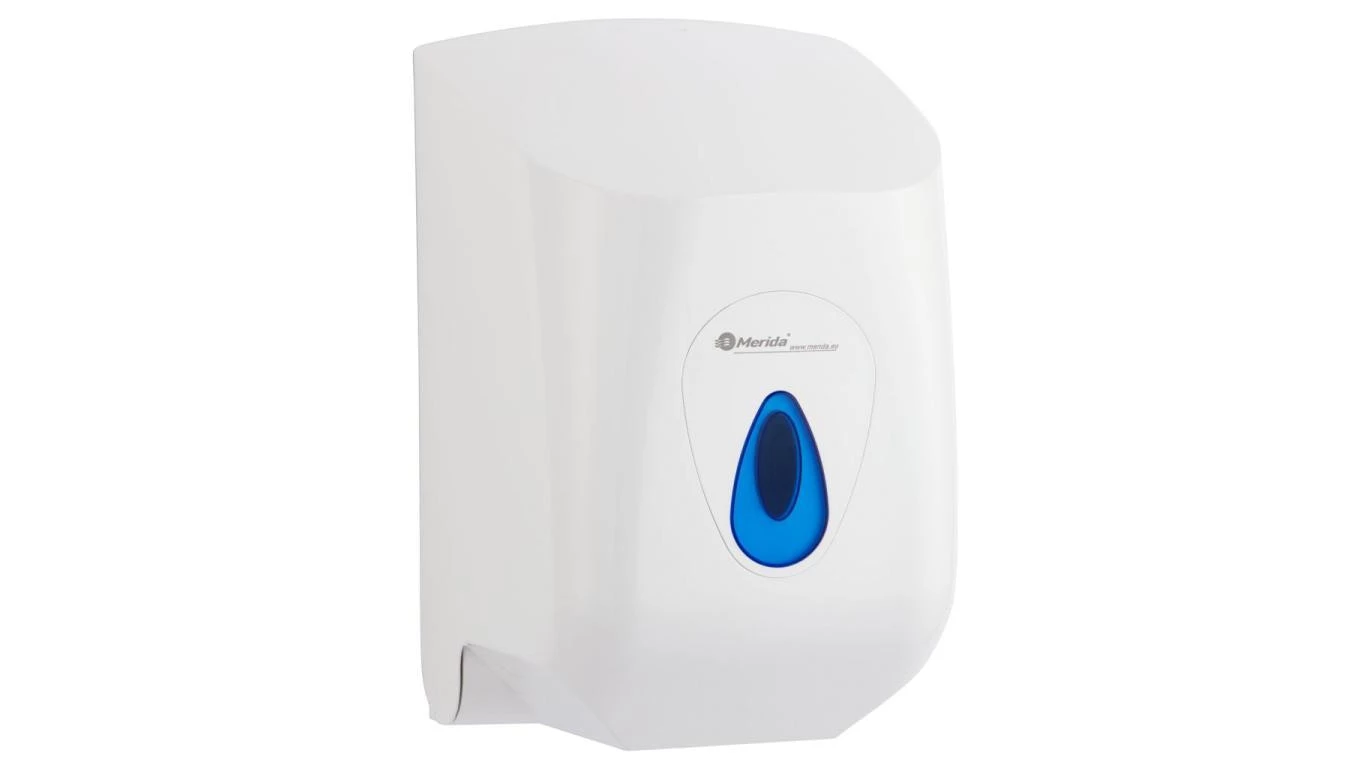 Pojemnik na ręczniki papierowe w rolach MERIDA TOP MAXI biały ABS okienko niebieskie CTN101
