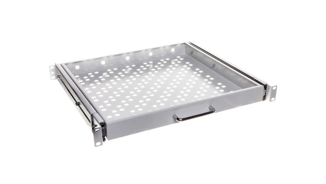 Półka 19 cali 1U głębokość 400mm regulacja +/-200mm wysuwana RAL7035 19-0055S
