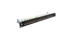 Patch panel RACK 19 kat.6A 24p FTP z półką 1U czarny NEKU