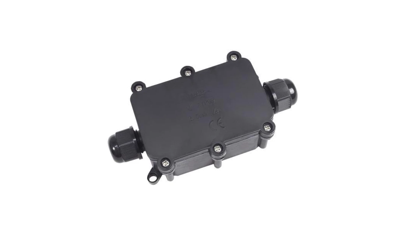 Prostokątna puszka instalacyjna IP68, 2 wloty + złącze 4 torowe
