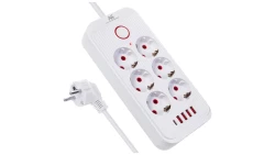 Listwa zasilająca Maclean, przedłużacz 6 gniazd + 4xUSB, 110-240V AC 50/60Hz, 2.1A max 2500W, 1,5 m, biała, MCE389 W