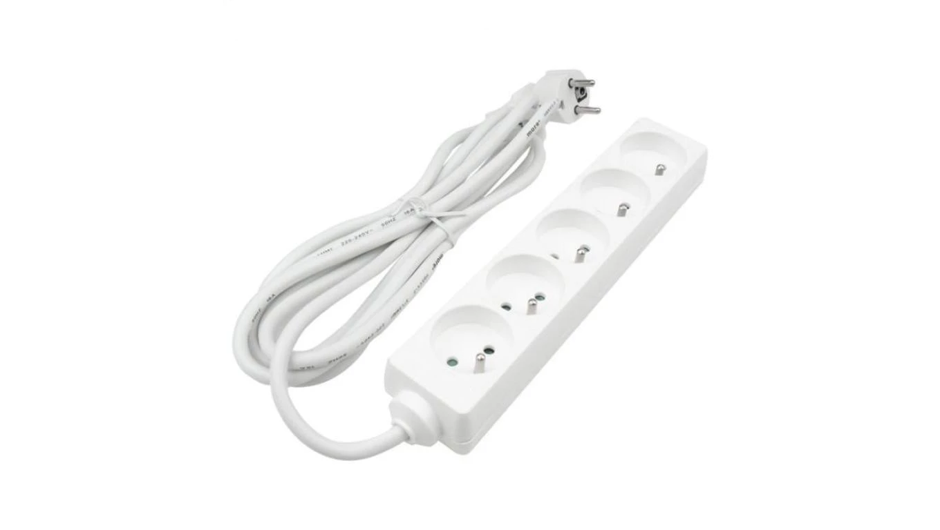 Przedłużacz 4-gniazdowy, 5m biały, z łącznikiem, 3x1,0mm OWY / 35450