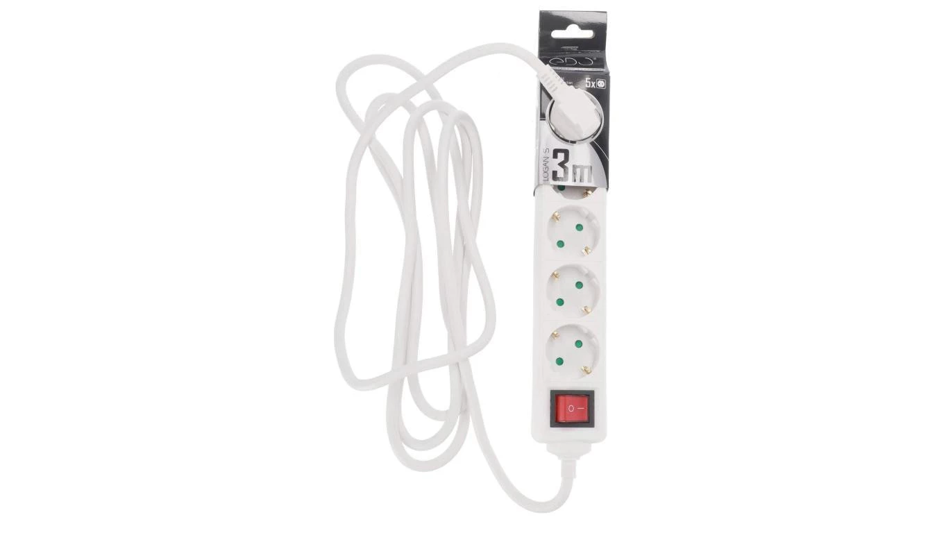 Przedłużacz domowy przenośny LOGAN S White 5 - krotny Schuko 3m z włącznikiem EDO777581 EDO