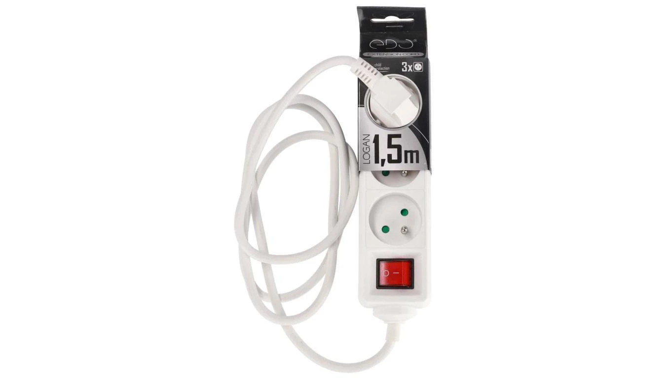 Przedłużacz domowy przenośny LOGAN White 3 - krotny z uziemieniem 1,5m z włącznikiem EDO777560 EDO