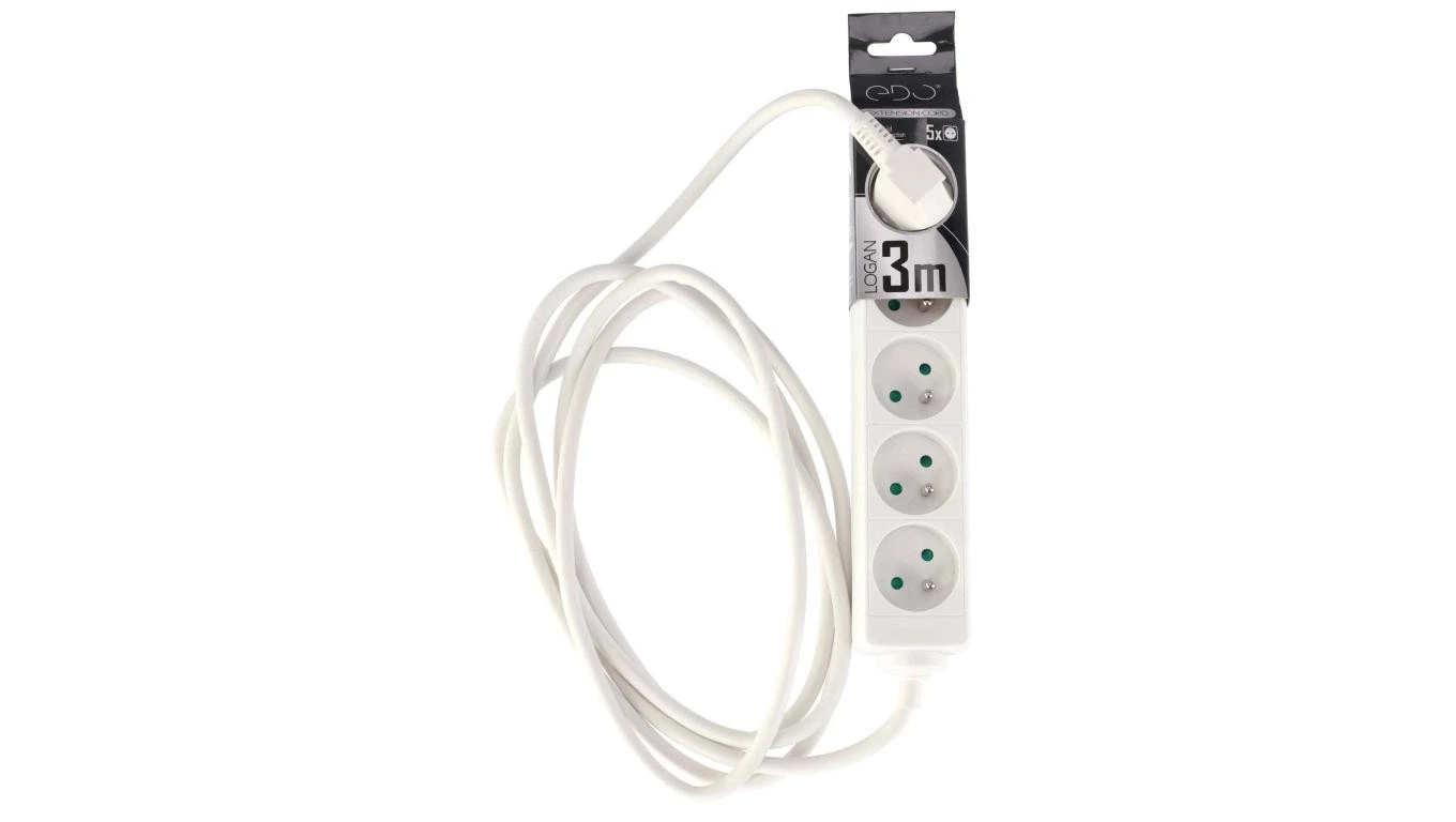 Przedłużacz domowy przenośny LOGAN White 5 - krotny z uziemieniem 3m EDO777558