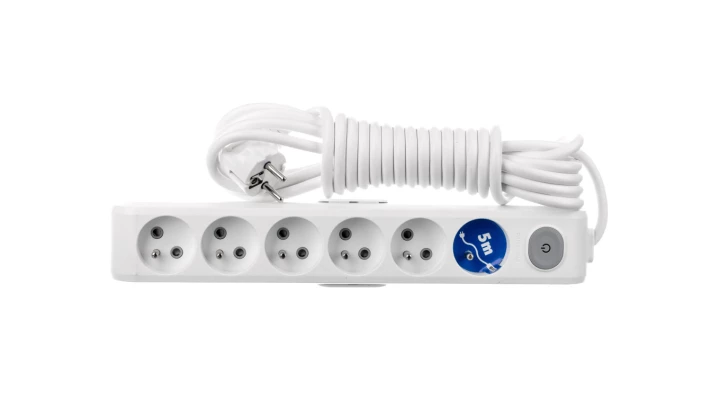 Przedłużacz z wyłącznikiem 6-gniazd z/u 10A 5m /OMY 3x1/ biały PS-670WS T-106220