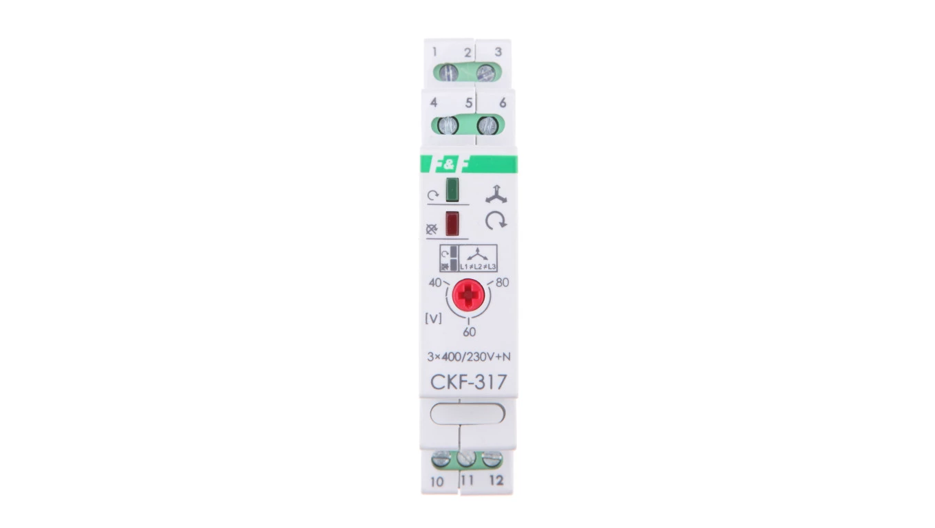 Przekaźnik kolejności, zaniku i asymetrii faz 10A 1P 0,5-5sek 40-80V CKF-BT