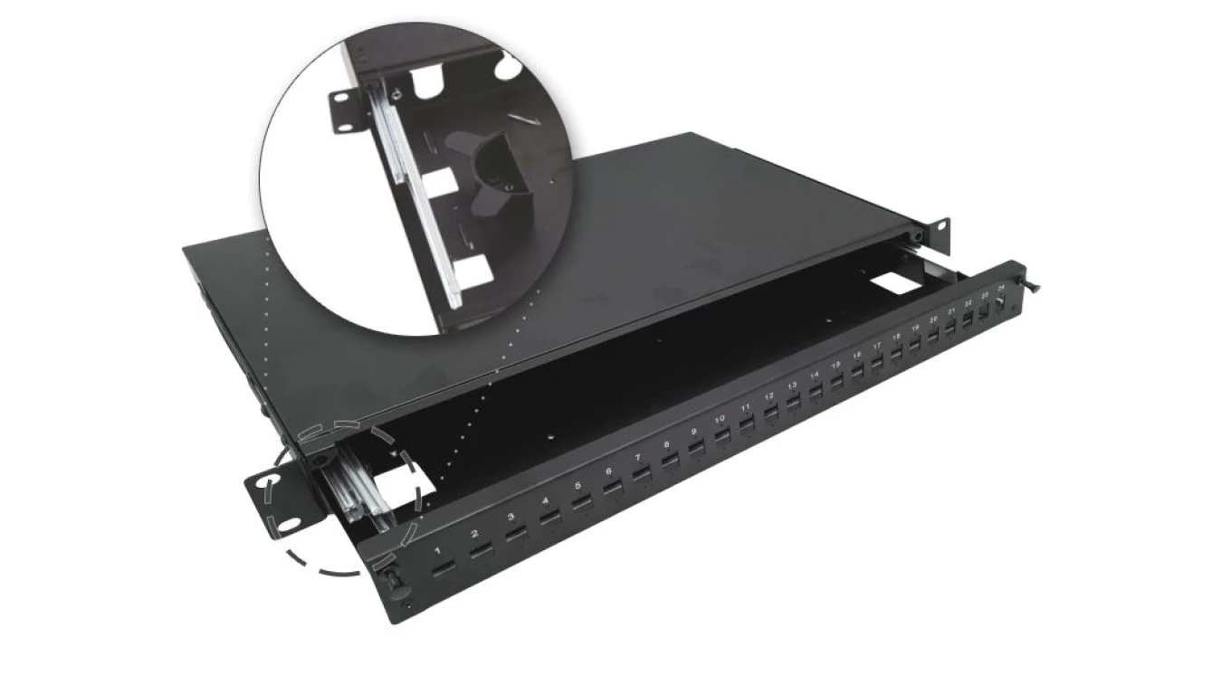 Przełącznica światłowodowa teleskopowa 24xSC simplex / 24xLC duplex 19 1U, wysuwalna FOP-1U-24SCS-C-P