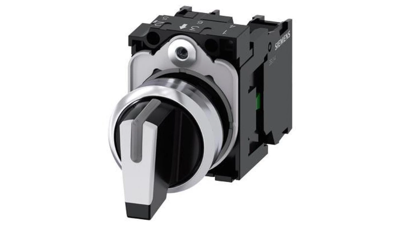 Przełącznik obrotowy 22mm okrągły tworzywo sztuczne krótki I-O-II bez samopow z uchwytem 1NO 1NO śrubowe 3SU1100-2BL60-1NA0