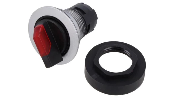 Przełącznik 2 położeniowy pokrętło 22mm czerwony 1Z 1R bez samopowrotu z podświetleniem 230V AC SP22-PL.C-11-230-LEDAC