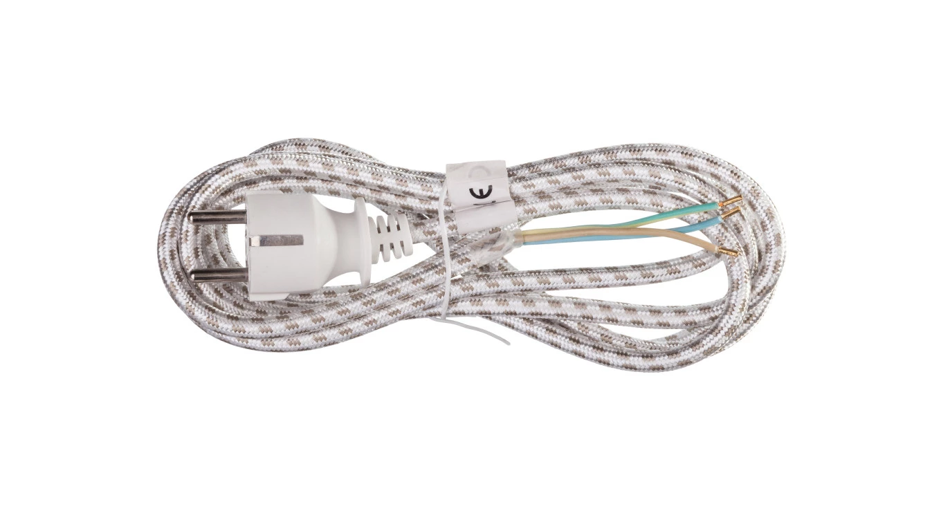 Przewód przyłączeniowy z wtyczką z/u 2m H03RT-H 3x0,75 /do żelazka/ bawełniany PPJ/ 2m