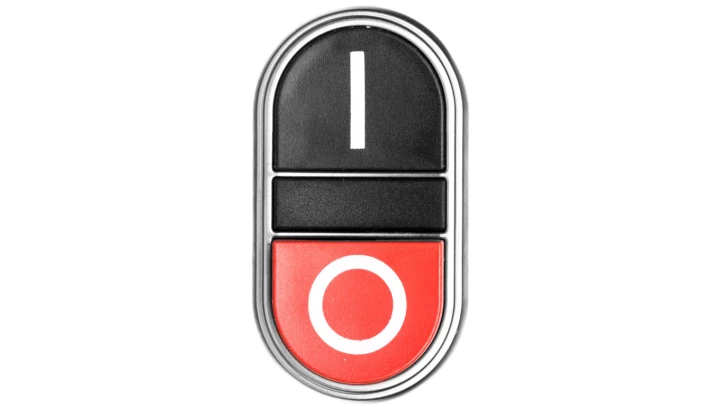 Przycisk sterowniczy 22mm podwójny czarno/czerwony z samopowrotem bez adaptera /I-0/ LPCB7222