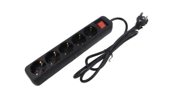 PS1-05F-0150-BK Przedłużacz sieciowy 3x1mm2 Schuko Gniazda: 5 guma czarny