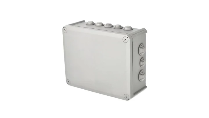 Puszka hermetyczna natynkowa z dławikami 240x190x95mm bezhalogenowa, odporna na UV, dekiel przykręcany IP66 szary