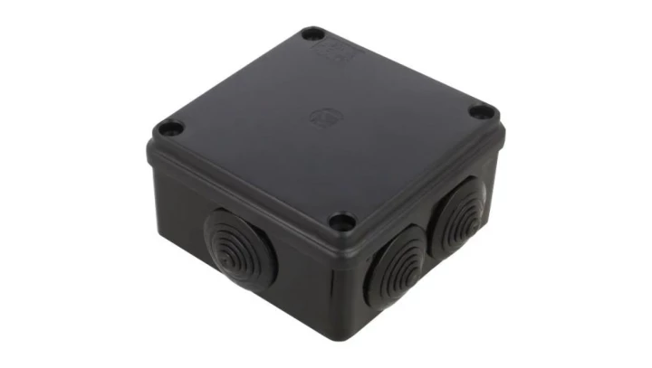 Puszka hermetyczna natynkowa 70x70x35mm z dławikami, bezhalogenowa, odporna na UV,zamknięcie na klik czarny IP55