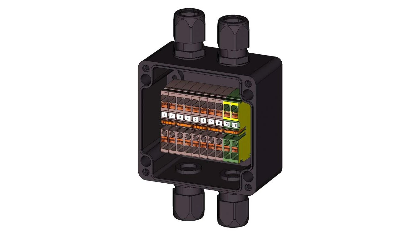 Zaciski, przedłużenia, szyny i okablowanie