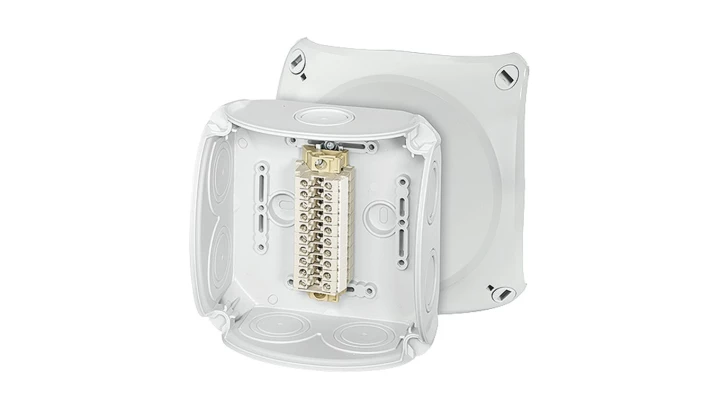 Puszka do instalacji wewnętrznych biała IP55 10 dławnic membranowych z zaciskami 5-biegunów DE 9346 6000323