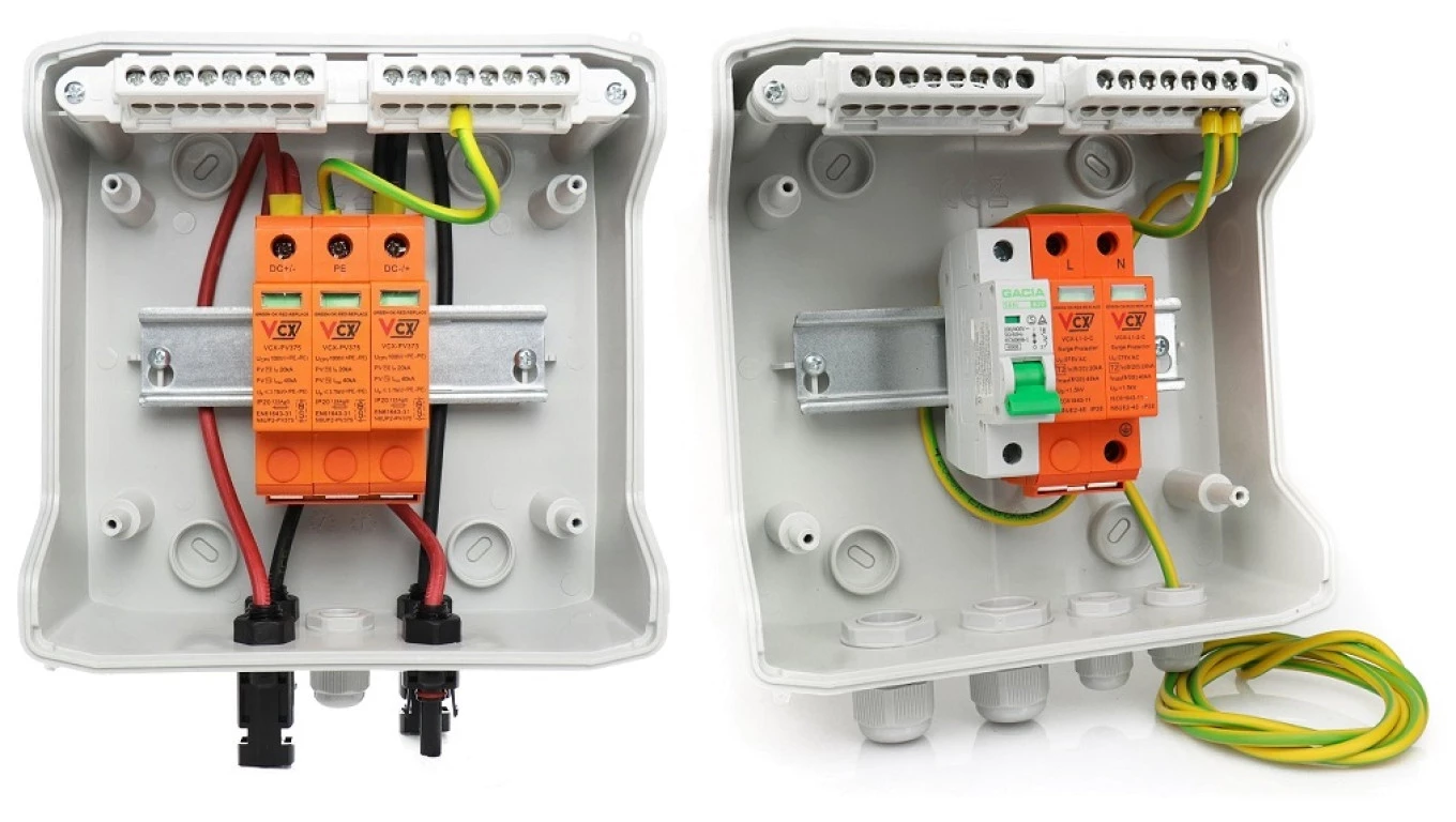 Skrzynka przyłączeniowa z ogranicznikiem przepięć DC+AC, 1000V, typ 2, 1x łańcuch PV, 1x MPPT // ogranicznik AC typu SH-75 DCAC