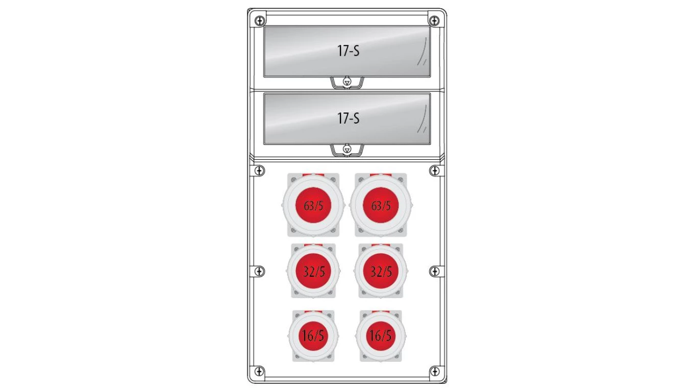 Rozdzielnica 0-1(32A) 0-1(16A) 1x5x32A 3x5x16A 2x3x16A INA=32A SB-008605-S0060-54
