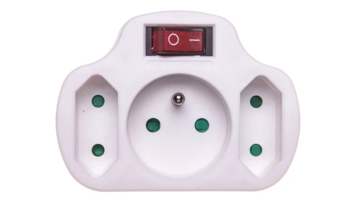 Rozgałęźnik wtyczkowy z wyłącznikiem 1-gniazdo z/u + 2x Euro biały R-12WS-B