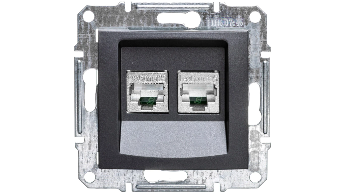Simon 55 Gniazdo komputerowe RJ45 kategoria 5e + telefoniczne RJ12 (moduł) Czarny mat T5F.01/149