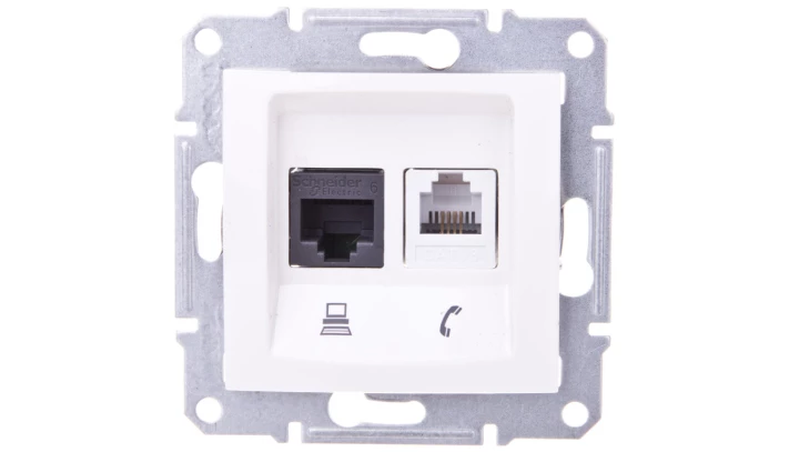 DECO Gniazdo telefoniczne pojedyncze 1xRJ11 + komputerowego pojedyncze 1xRJ45, kat. 5e, 8-stykowy, beznarzędziowe szary mat 27DG