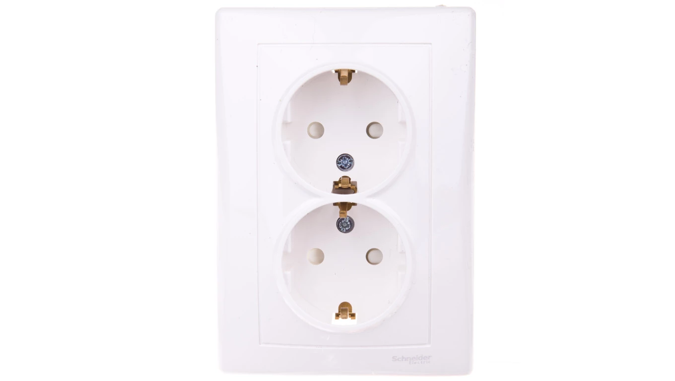 Simon 54 Gniazdo podwójne SCHUKO z/u 16A IP20 z przesłoną torów białe DGSz2Z/11
