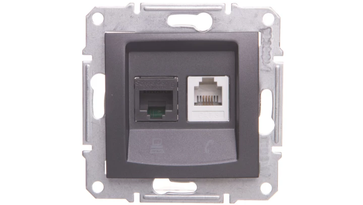 FLEXI Gniazdo telefoniczne pojedyncze 1xRJ11 + komputerowe pojedyncze 1xRJ45, kat. 5e, 8-stykowe, beznarzędziowe grafitowy 11FGT