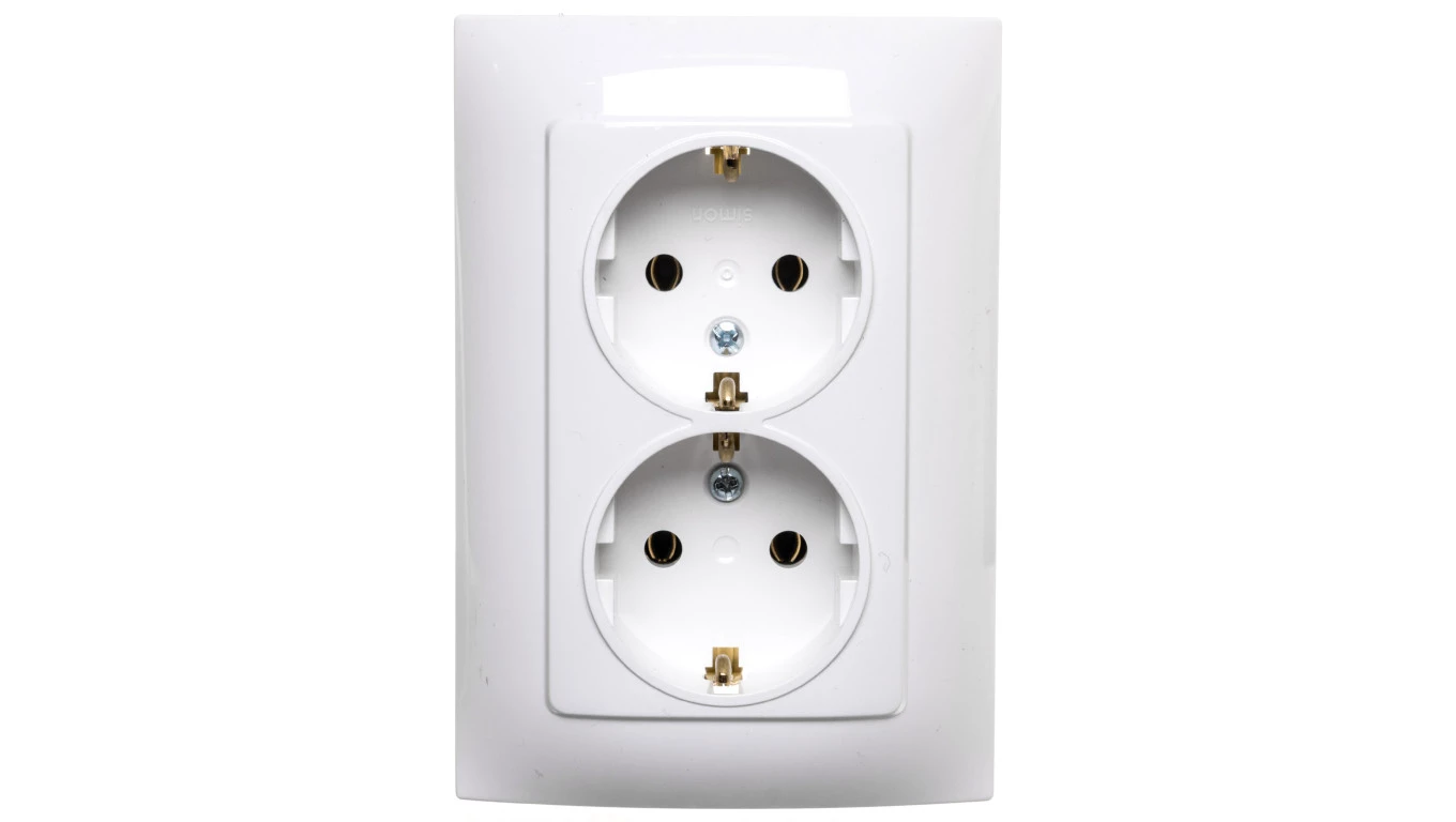 Simon 54 Gniazdo podwójne SCHUKO z/u 16A IP20 z przesłoną torów białe DGSz2Z/11