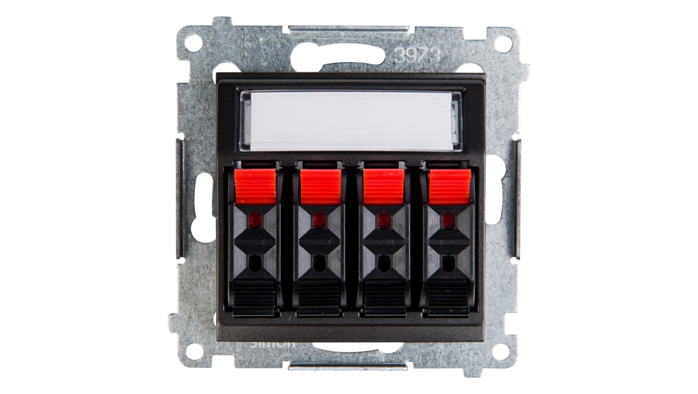 Simon 10 Gniazdo głośnikowe pojedyncze -1 kolumna głośnikowa (moduł). Przekrój przew. dla wyjścia 6 mm2 czarny mat CGL2.01/49