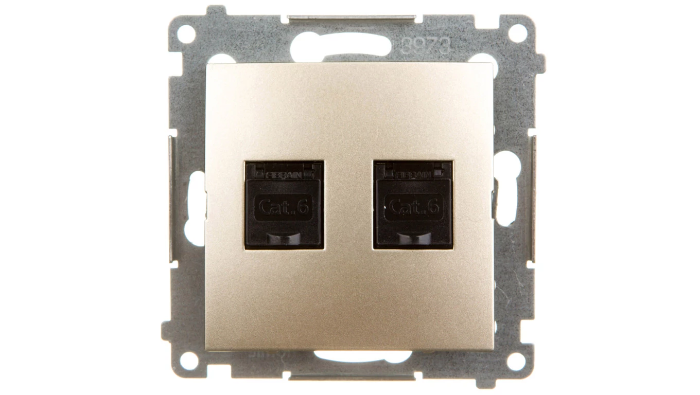 PREMIUM Gniazdo komputerowe podwójne 2xRJ45 kat.6 krone LSA+ piaskowy metalizowany GTP - 22 Pr/6