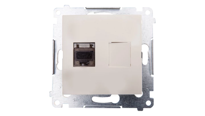 Simon Basic Gniazdo komputerowe podwójne RJ45 kategoria 6 ekranowane z przesłoną przeciwkurz. beż BM62E.01/12