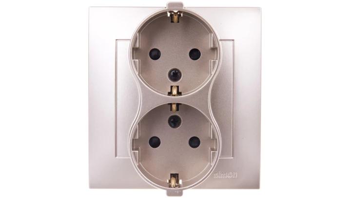 Simon 54 Gniazdo podwójne z/u 16A IP20 z przesłoną torów złoty mat DGZ2MZ.01/44