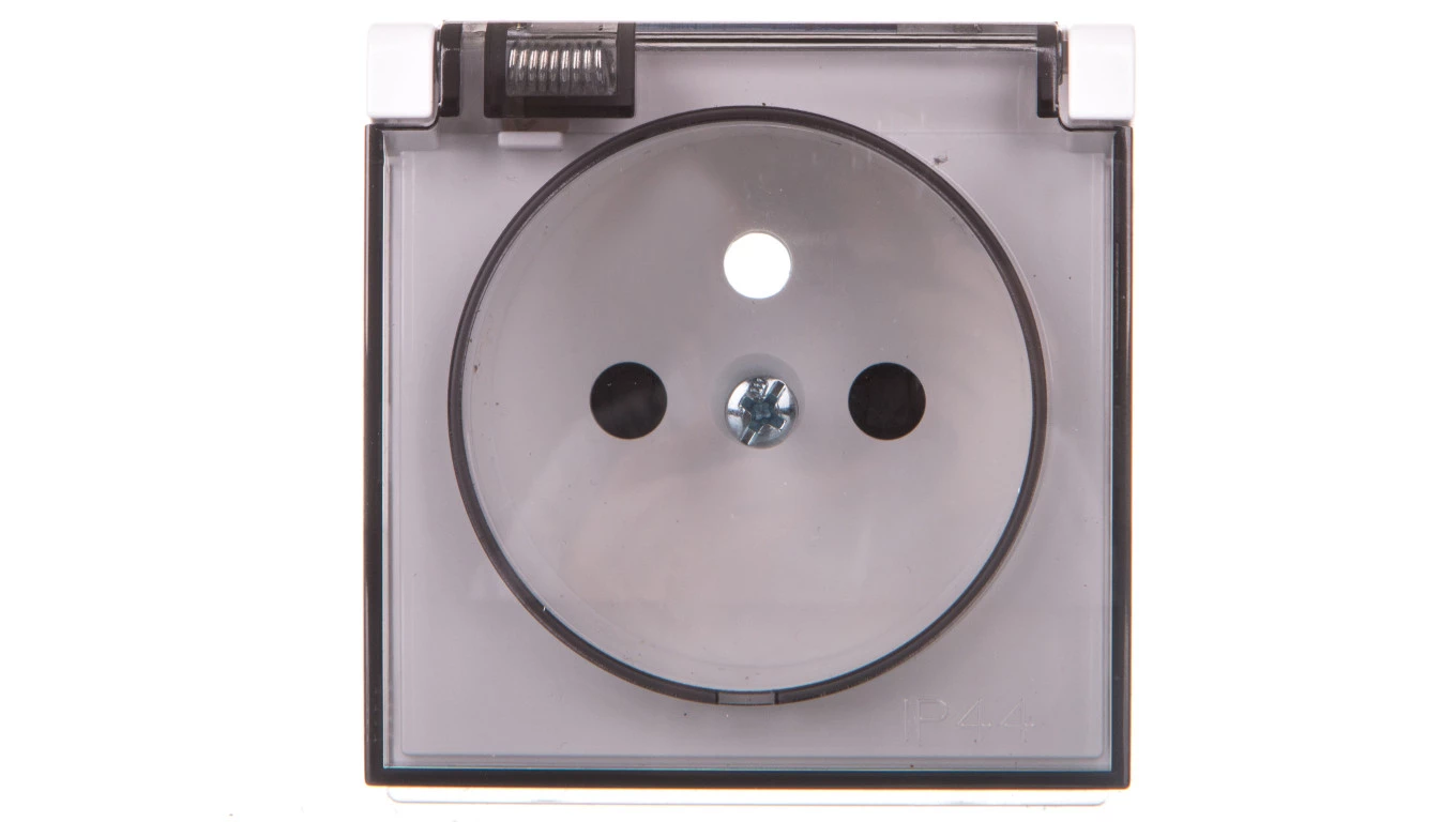 Simon 54 Gniazdo bryzgoszczelne z/u IP44 z klapką transparentną bez uszczelki antracyt DGZ1BUZ.01/48A